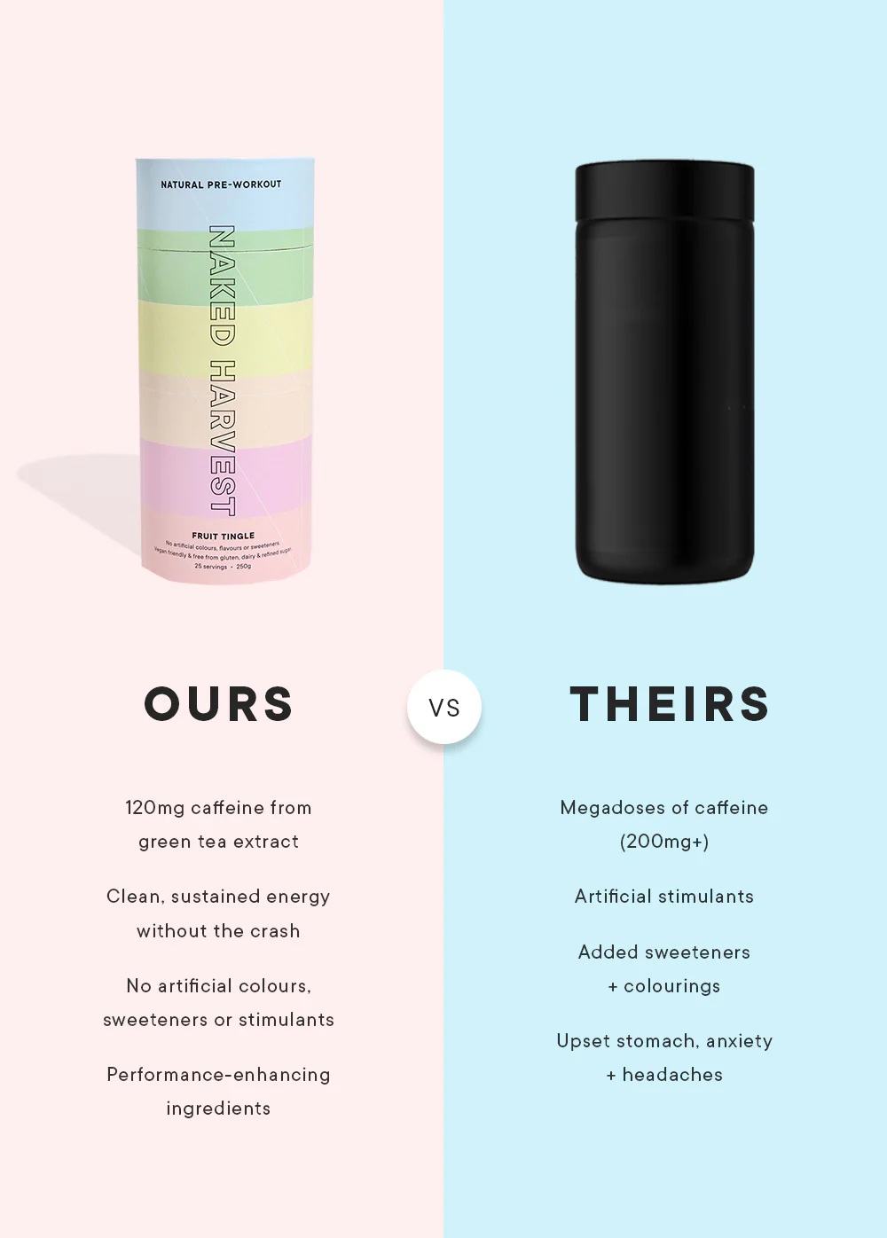 INGREDIENTS Active Blend (Creatine Monohydrate, Beta Alanine, Taurine, Acetyl-L-Carnitine Hydrochloride, Raspberry Ketones), Natural Flavour, Acacia Gum, Acidity Regulator (Malic Acid), Mineral Salts (Calcium Citrate, Magnesium Citrate), Anticaking Agent (Silicon Dioxide), Natural Colours (Turmeric, Beetroot), Botanical Extracts (Green Tea, Guarana), Natural Sweeteners (Steviol Glycosides, Thaumatin), Vitamins (Vitamam C (Ascorbic Acid), Vitamin E).